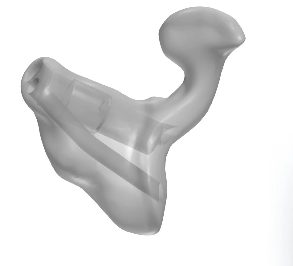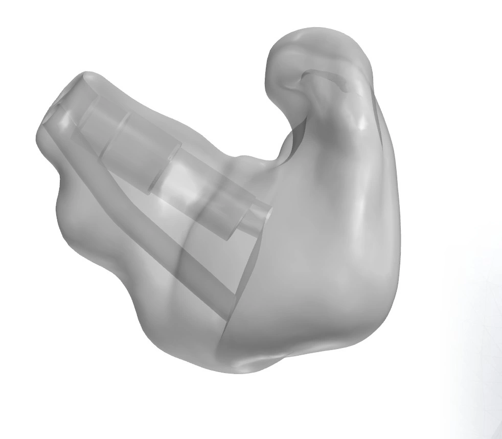 Conçu à partir d’un embout coquille dont la conque est partiellement évidée, l’embout Phantomold offre les mêmes bénéfices acoustiques qu’un coquille traditionnel, dans une version plus légère.
